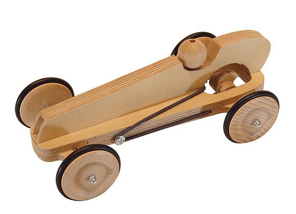 Au volant de LA VOITURE DETTORE, sur la grille de départ, vous accompagnerez votre pilote en herbe à la découverte de la propulsion à élastique, après avoir scié, poncé et collé.