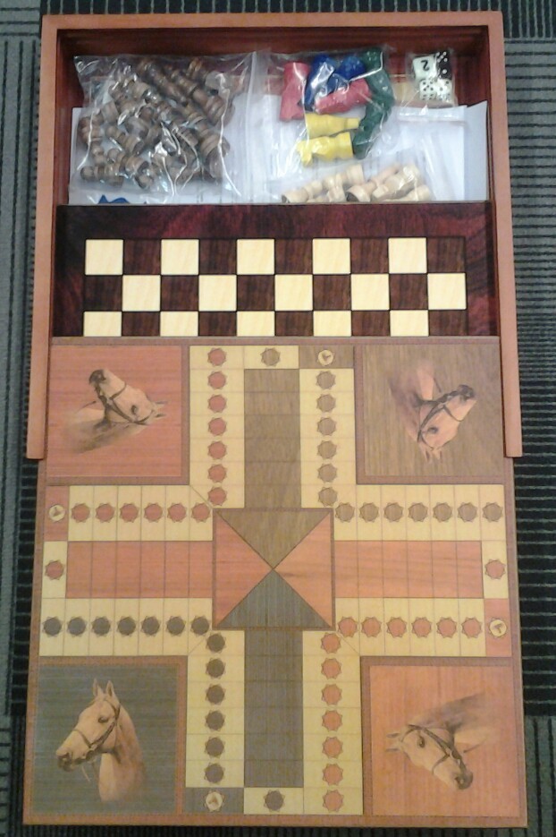 Coffret Multi Jeux : Jeu de L'Oie, Petits Chevaux, Backgammon, Dames FR, Echec