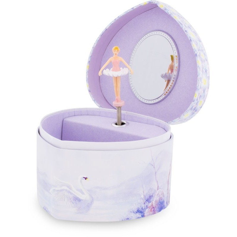 Boite a musique en forme de coeur sur le thème du lac des cygnes