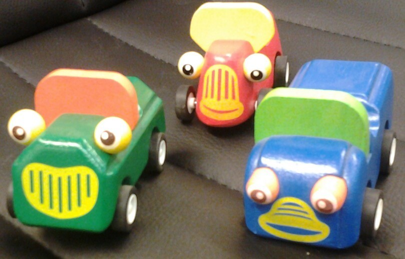 Divers modèle :- voiture de course rouge et jaune prénommé "annie"- voiture traditionnel verte et orange prénommé "billy"- voiture camionette bleu et verte prénommé "tommy"