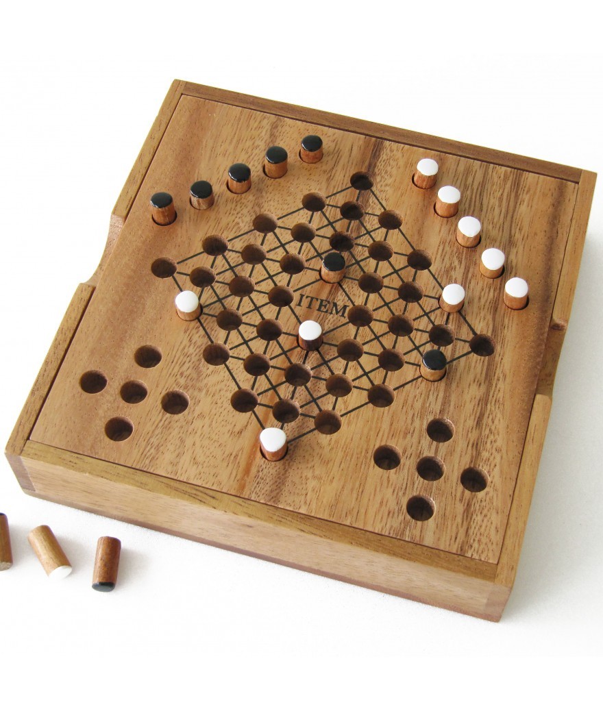 2 joueurs (dès 4 ans) vont devoir chacun leur tour placer puis déplacer leurs 10 pions à la manière du jeu de dames pour réussir à aligner 5 pions de leur couleur avant l'adversaire.